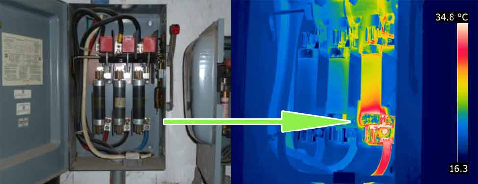 La thermographie permet l'analyse et la vérification des composantes électriques pour détecter le surchauffement.