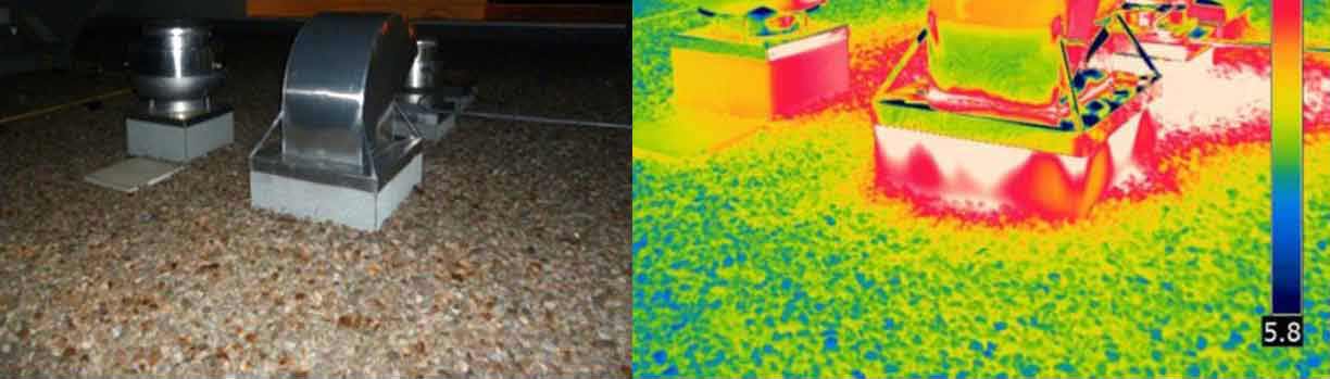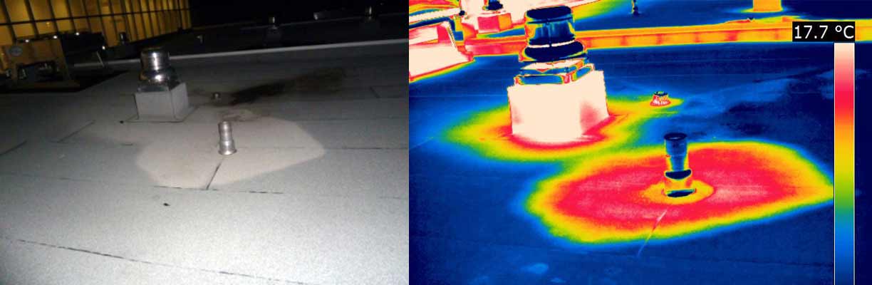 Nous pouvons faire l'évaluation d'un toit plat par la Thermographie.